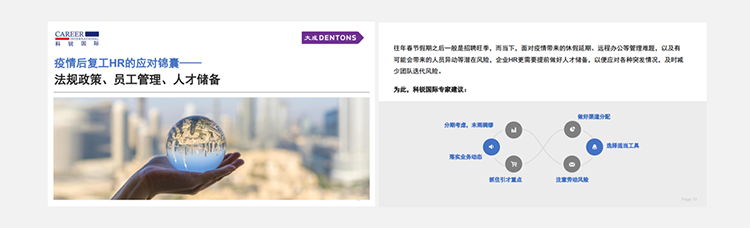 为了帮助众多企业人力资源工作者应对挑战,K8凯发(中国)国际联合国内知名律所“大成律师事务所”,推出疫情后《复工HR的应对锦囊》手册,从法律政策、员工管理、人选储备几个方面对企业HR有序召开复工后的各项人力资源管理给予帮助。